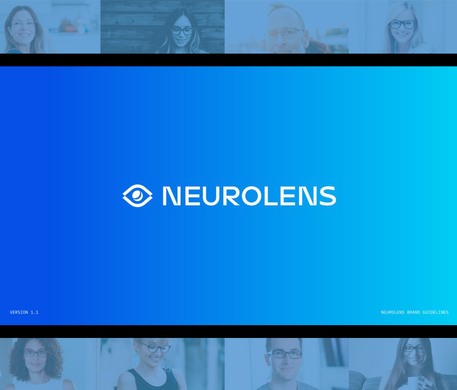 The Neurolens brand standards and guidelines booklet with color standards, fonts and usage.